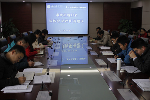 本网讯11月27日下午,在行知楼2008会议室,全体辅导员就素质拓展活动开展情况谈体会、话收获、提建议,分享各自的感受与反思。