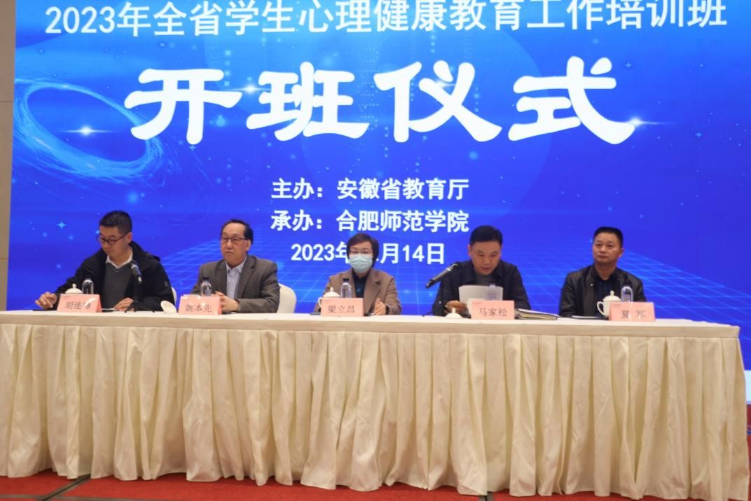 为深入学习贯彻习近平总书记关于心理健康教育的重要论述,进一步推进安徽省学生心理健康教育工作建设,提升心理健康教育工作者的业务能力和水平。由省教育厅举办、beat365唯一官方网站承办的2023年全省学生心理健康教育工作培训班开班仪式于12月14日下午在合肥明珠瑞士酒店举办,省教育厅高校学生处处长马家松、二级调研员夏军,学院党委副书记梁立昌、安徽省学生心理健康教育专家指导委员会主任委员姚本先出席开班仪式,省内各高校负责大学生心理健康教育工作的部门负责人、各高校大学生心理健康教育中心负责人、各市教育局分管学生管理工作的副局长和省学生心理健康教育专家指导委员会委员等260余人参加培训。会议由教育与心理科学学院副院长胡连峰主持。