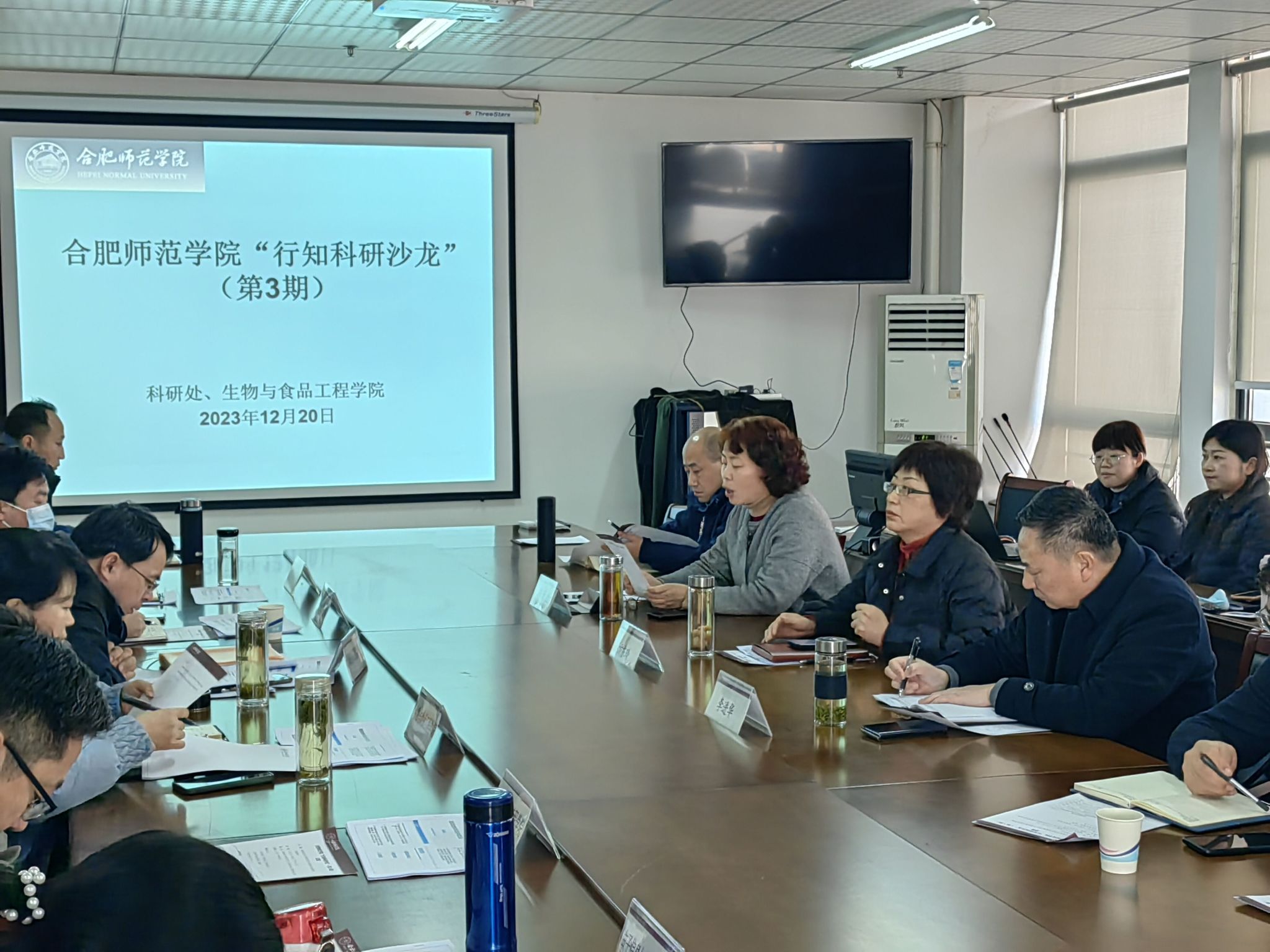 12月20日下午,学院在锦绣校区行知楼1502会议室举办了主题为“推进高层次项目申报暨2024年度国家自然科学基金申报推进会”的第三期“行知科研沙龙”。本次沙龙由科研处主办,生物与食品工程学院承办。院党委副书记、院长方东玲出席科研沙龙,理工科二级学院领导、教师近40人参加了此次沙龙。沙龙由科研处处长胡昂主持。