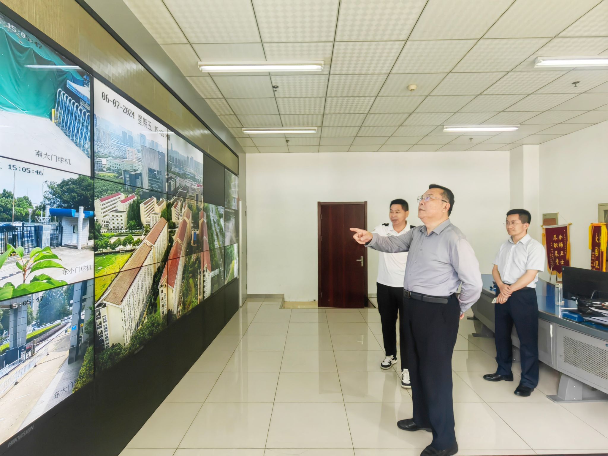 近日,院党委书记徐成钢以“四不两直”方式深入校园,检查指导假期安全稳定和服务保障工作。保卫处、党政办负责人参与。
