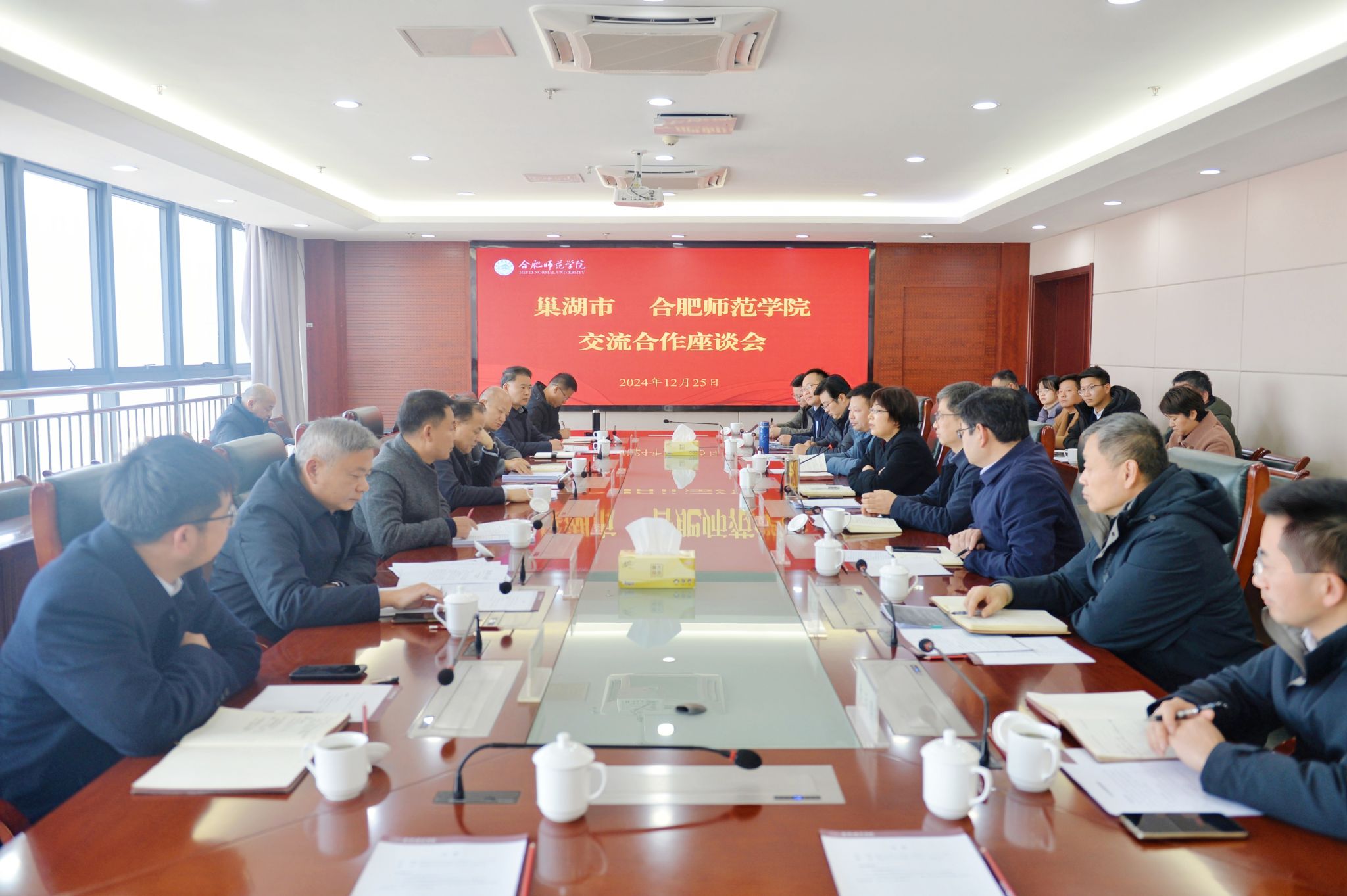 12月25日下午,巢湖市委副书记、市政府市长汪功胜,副市长杨帆一行来校调研交流校地基础合作教育、高层次人才公寓建设、滨湖校区二期建设等工作,院党委副书记、院长方东玲,党委委员、副院长华银峰和相关职能部门负责人参加调研交流。