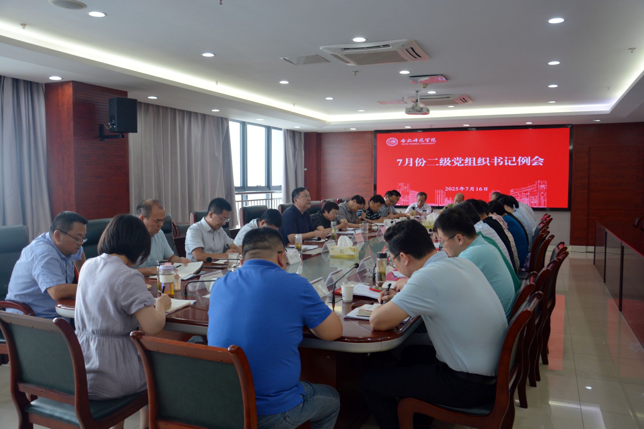 7月16日上午,学院在锦绣校区行知楼第二会议室召开7月份二级党组织书记例会,调度推进各二级党组织学习教育进展情况及整改整治情况,部署推进近期基层党建重点工作。党委书记徐成钢出席会议并讲话,各二级党组织书记,组织部、党政办、纪委办、巡察办、宣传部、统战部、党委教师工作部、学生工作部、保卫部等部门负责人参加会议,会议由党委副书记梁立昌主持。