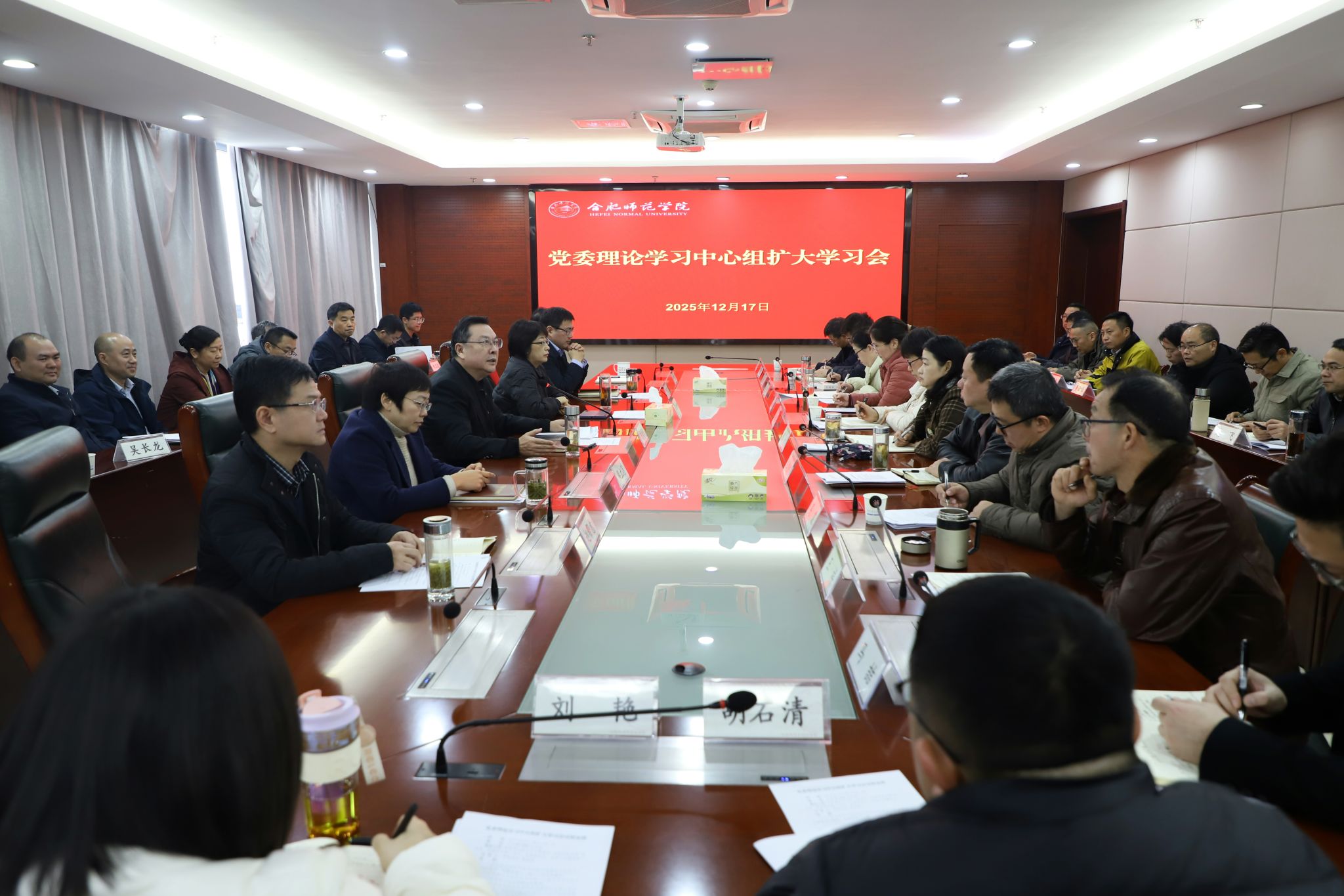 12月17日上午,学校在行知楼2008会议室举行党委理论学习中心组扩大学习会。党委书记徐成钢主持会议并讲话。党委理论学习中心组成员,各院系级党委(党总支、直属党支部)书记,各学院院长,各部门主要负责人参加学习。