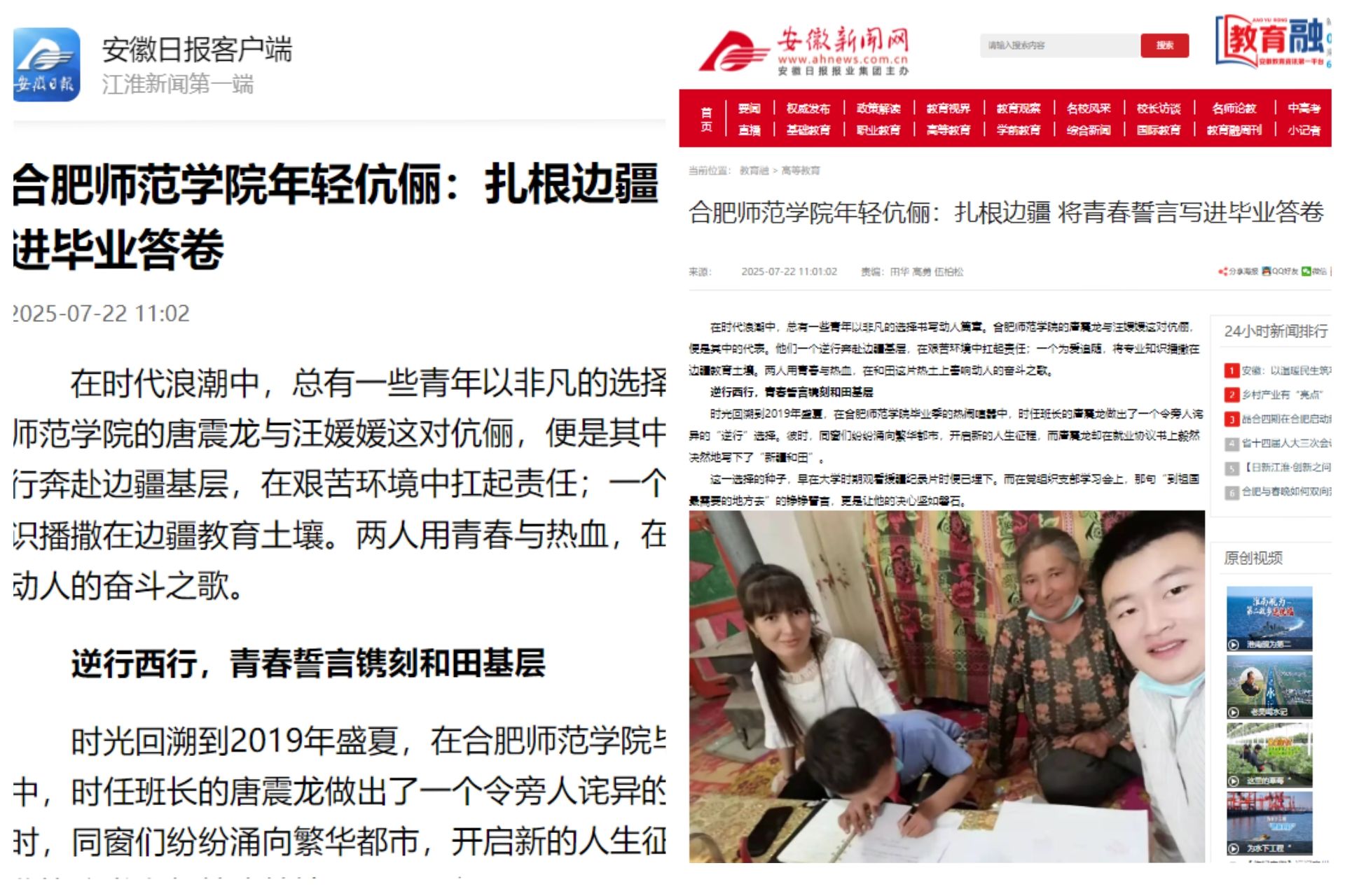 安徽日报等报道我校校友伉俪扎根边疆书写“家国情怀”的感人事迹