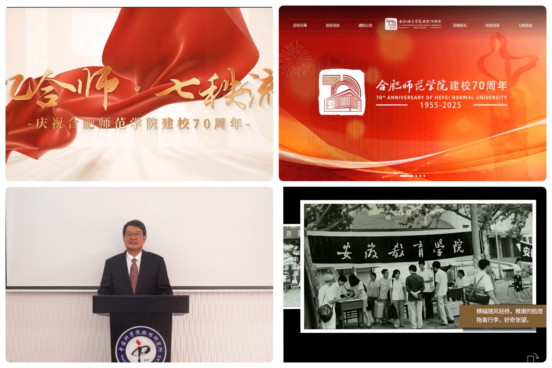 设计上线校庆专题网站,在官方微信、视频号等新媒体平台,精心策划推出 “合师记忆”、“校庆倒计时” 系列专题,制作 “院士寄语”、“校友祝福”、“老照片复苏” 等富有感染力的融媒体作品,极大地提升了校庆活动的关注度与参与感,增强了学校文化的影响力和传播力。