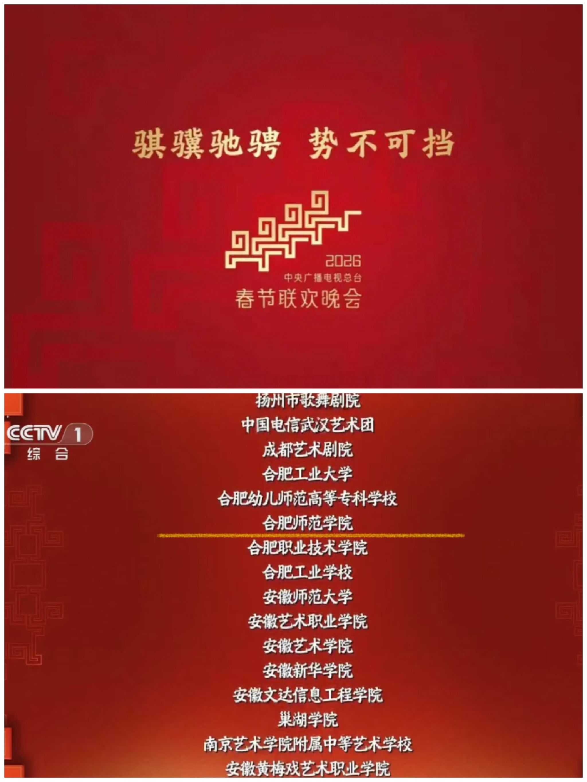 合韵满江淮,合师启新程。2月16日除夕夜,2026年中央广播电视总台马年春节联欢晚会的帷幕徐徐展开,首次登上央视春晚的合肥分会场惊艳亮相。在这场科技与人文交相辉映的视听盛宴中,来自beat365唯一官方网站的206名师生用青春之姿为徽风皖韵添彩,把新春祝福传遍五湖四海,也让学校首次在央视春晚这一国家级文化盛宴上传出合师声音、留下合师印迹、展现合师风采。