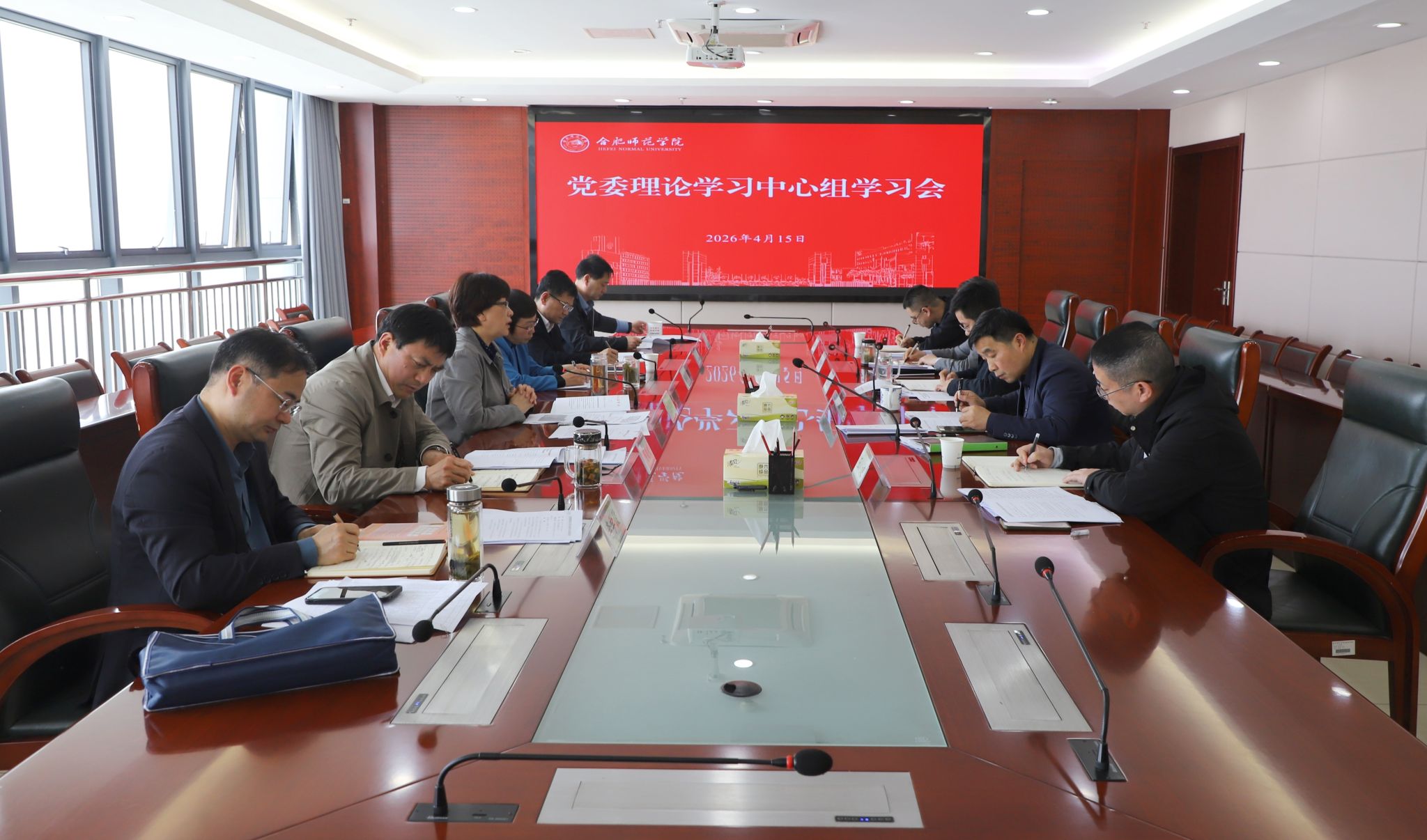 4月15日上午,学校在行知楼2008会议室举办党委理论学习中心组学习会,党委书记、校长方东玲主持会议并讲话,党委理论学习中心组成员参加会议。按照“双随机”学习机制,财务处、审计处主要负责人列席会议。