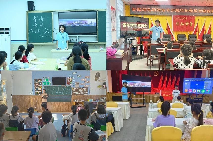 扩大社会影响树品牌。党的十八大以来,学院累计建设“行知学堂”4300余个,直接参与“小先生”1.9万余人次,服务留守儿童和农民工子女6万余人,学堂建设地点遍布安徽省16个地市,遍及全国15个省市自治区,获得基层政府和广大群众的普遍欢迎和好评,“青字号”品牌越来越响、影响力越来越大。“行知学堂”实践活动先后获评团中央第五届青年志愿服务项目大赛金奖、中宣部和中央文明办全国学雷锋志愿服务“四个100”先进典型、团中央第十三届青年志愿者优秀项目奖、省委党的群众路线教育实践活动重大典型等多个表彰荣誉,学院连续四年获评全国“三下乡”优秀组织单位。“行知学堂”“小先生”中先后涌现出“中国好人”“安徽省十佳大学生”“中国大学生自强之星”“安徽省大学生年度人物”“安徽省优秀青年志愿者”等一批先进典型人物,成为了学校人才培养质量的重要体现。2023年暑期,依托“行知学堂”实践载体,学院共获批全国“三下乡”重点团队、全国“七彩假期”示范团队等国家级“三下乡”等专项102项,安徽省“少先队实践营”等专项6项。截至8月初,“行知学堂”实践活动已先后受到人民网、新华网、学习强国、共青团中央微信公众号、中国青年报、安徽新闻联播、安徽日报、安徽青年报、安徽教育网、安徽青年网等主流媒体广泛报道近200次。(院团委)