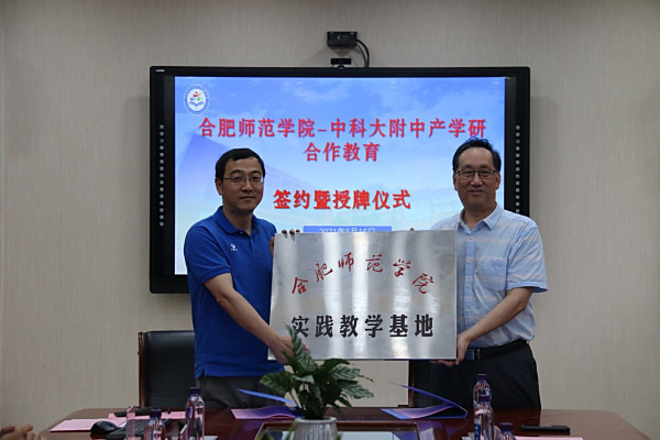 本网讯 6月16日下午,为落实立德树人根本任务,加强基础教育合作交流,强化师范生培养,党委委员、副院长姚本先在教务处、化学与化学工程学院等单位负责人的陪同下,赴中国科学技术大学附属中学参加产学研合作教育签约暨授牌仪式。中国科学技术大学附属中学校长马运生、副校长徐斌、校长助理黄严生等热情接待,并与姚本先一行进行了热烈的会谈。