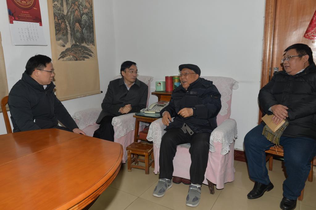 本网讯 春节来临之际,1月15日至19日,院党委书记徐成钢,党委副书记、院长孙道胜,党委副书记、副院长李进华,党委副书记吴昕春,副院长谢阳群、姚本先、曹卓良,纪委书记徐文林等在有关部门负责同志的陪同下,分别到离退休老领导、老干部、老教授、老党员家中走访慰问,代表学院向老同志们致以节日问候和新春祝福。