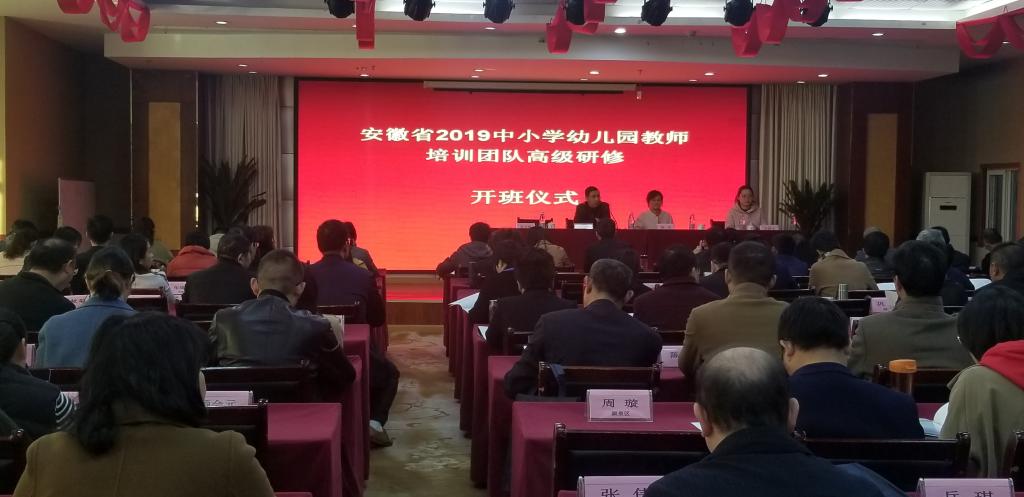 本网讯 11月19日上午,安徽省2019中小学幼儿园培训团队高级研修班在我院开班。继续教育学院院长吴文、副院长宋辉出席开班仪式,仪式由培训班班主任郑欣主持。来自全省各地市中小学幼儿园的150余名教师参加了开班仪式。