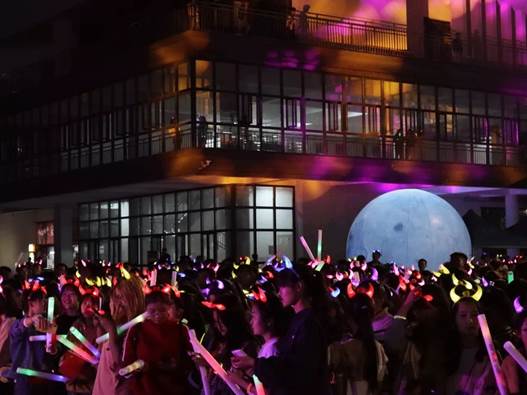 晚上6:10同学们就来到了唯实楼门口,有序排队检录,耐心等待开跑。活动正式开始,1000多名同学们一起出发,由体育学院的同学领跑,进行了长达40分钟的环绕跑。在光影绚丽的跑道上,同学们戴荧光饰品,手握荧光棒,奔跑的身影、晃动的荧光,使夜晚的合师校园如同璀璨星河,四处洋溢着青春的气息。为增强活动趣味性,活动现场还安排了文艺演出、微信抽奖等活动,并设立了游戏区,以“指压板”、“丑小鸭气球接力”、“反向思维训练”等形式缓解了同学们的学习压力,将活动推向了高潮。活动尾声,参赛选手齐聚唯实楼门口,淋漓的汗水、起伏的喘息是他们年轻的姿态,书写着青春的赞歌。