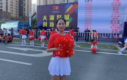 两组啦啦操队员交替上场,每组休息时间不到二十分钟,持续一整天的循环跳跃。年轻的姑娘们一丝不苟步步到位,往来市民驻足观看纷纷点赞。市民王先生更请求与啦啦操的姑娘们合影留念:“孩子们太厉害了,一直都没有休息,为他们点赞”。面对现场各种夸赞,啦啦操队的小姑娘们羞涩一笑:“现场太热闹啦,尤其看到半程马拉松的第一名是中国人,骄傲自豪让我们都忘了疲惫,充满干劲儿”。