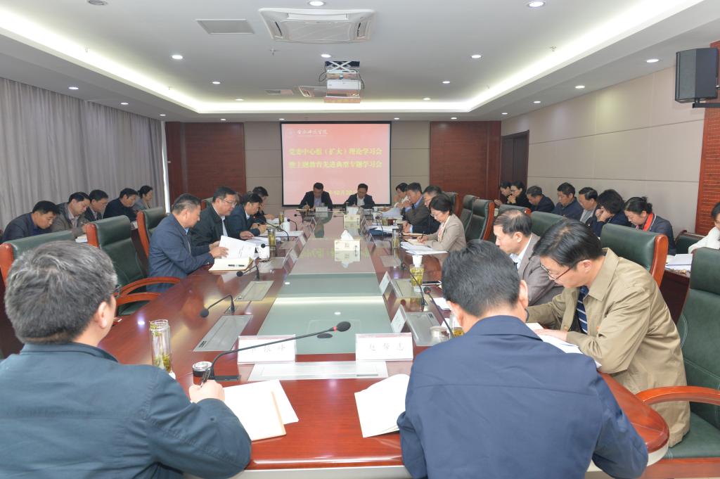 本网讯 10月30日上午,党委理论学习中心组在锦绣校区行知楼第二会议室召开扩大学习会暨主题教育先进典型专题学习会。党委书记徐成钢主持会议。党委理论学习中心组成员出席会议,各党总支、直属党支部书记,各学院院长,各部门主要负责人参加会议。