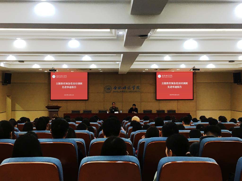 本网讯 10月16日下午,学院“不忘初心、牢记使命”主题教育预备党员培训班举办首场报告暨先进典型事迹报告会。中国青年五四奖章、全国道德模范提名奖获得者,省优秀共产党员,岳西县毛尖山乡板舍村敬老院院长、儿童留守中心主任刘磊应邀作题为《放飞青春梦想、实现幸福人生》先进事迹报告。