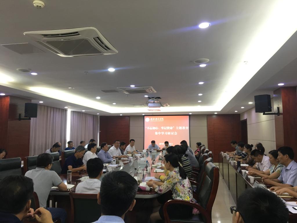 党委副书记、院长孙道胜在发言中围绕“守初心、担使命,做教育人、合师人”谈了自己的学习体会。他说,初心贵在坚守,坚守需要信念;使命重在担当,担当需要本领;时代呼唤责任,责任成就事业。党委副书记吴昕春从“不忘初心、牢记使命”的深刻内涵,新时代坚守“共产党人的初心和使命”的重要性和坚持不忘初心、担当使命的具体路径等方面谈了学习体会。党委委员、副院长曹卓良围绕忠诚党的教育事业,坚持党的全面领导,担当为党育人为国育才的使命,培养社会主义接班人和建设者等内容谈了对教育工作者的初心和使命的认识。党委委员陈明生、华银峰、操申斌、赵帮恚围绕主题,联系思想和工作实际,交流了各自的学习收获和心得体会。