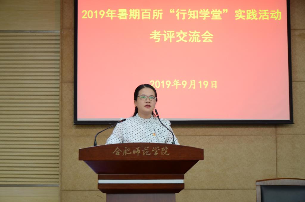 本网讯 9月19日下午,学院2019年暑期百所“行知学堂”实践活动考评交流会在锦绣校区学术报告厅举行。党委书记徐成钢、共青团安徽省委学校部部长卢蓉、合肥工业大学团委副书记武国剑、安徽农业大学团委副书记任琪、安徽建筑大学团委书记唐志敏、安徽三联学院团委书记李燕、安徽外国语学院团委书记程欢,各二级学院党总支书记、分团委书记、行知学堂“小先生”代表近300人参加考评会。