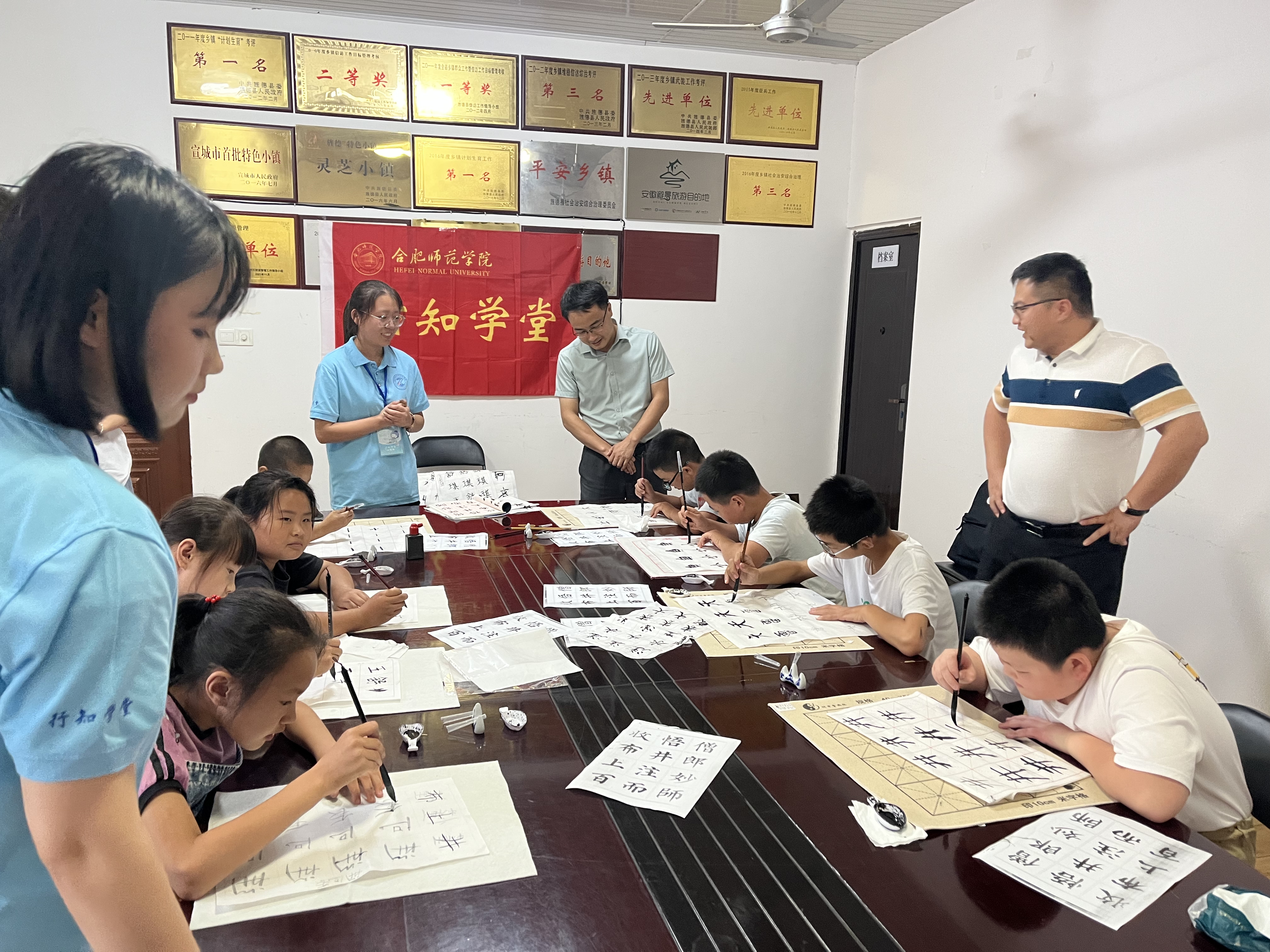 院团委一行看望了广德市誓节镇行知学堂,聆听了《行知文化》课程,观看了小学员手工作品展和合唱表演。院团委书记刁文彬向地方政府的关心和支持表示感谢,对“小先生”的教学成果表示肯定,并与小学员亲切互动。刁文彬指出,“行知学堂”在宣城市已经走过八个年头,“小先生”们要继续秉承优良传统,秉持“爱满天下、知行合一”的校训精神,为城乡儿童提供更优质的服务,不断擦亮“行知学堂”品牌。