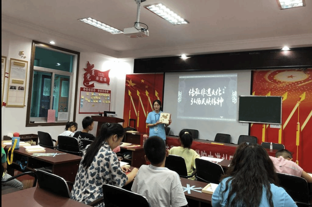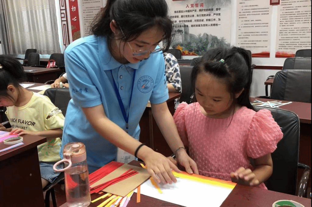 “小先生”徐蓥滢结合红色竹编作品向小学员们生动地讲述红色故事,引导小学员了解那个英勇而崇高的时代,感受到红色基因的伟大意义和影响力。