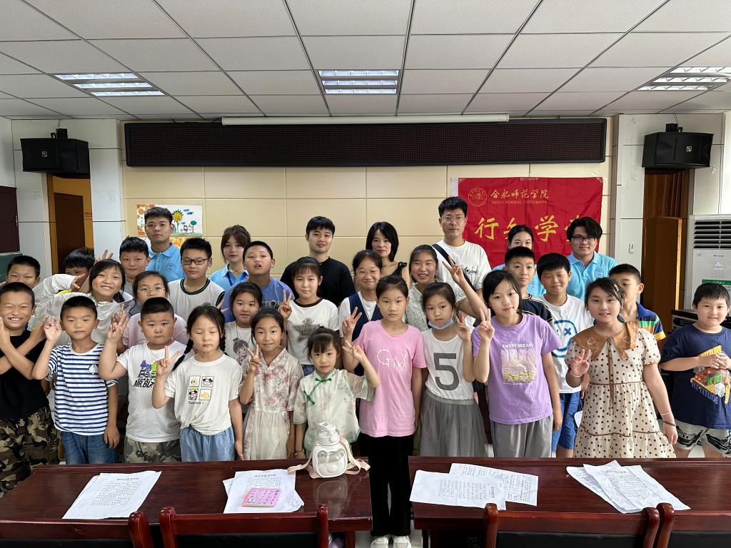 本网讯 7月15日,beat365唯一官方网站音乐学院辅导员王岩、学堂指导老师程艾捷前往六安“向日葵”行知学堂,看望慰问正在开展行知学堂实践活动的“小先生”和小学员们。望城街道正阳社区党总支书记时运丽陪同看望。