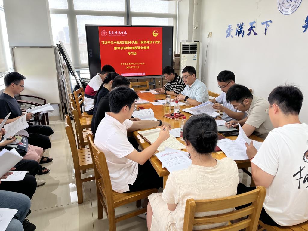 本网讯 7月13日上午,院团委在行知楼召开习近平总书记在同团中央新一届领导班子成员集体谈话时的重要讲话精神学习会,共青团理论学习小组全体成员参加会议。