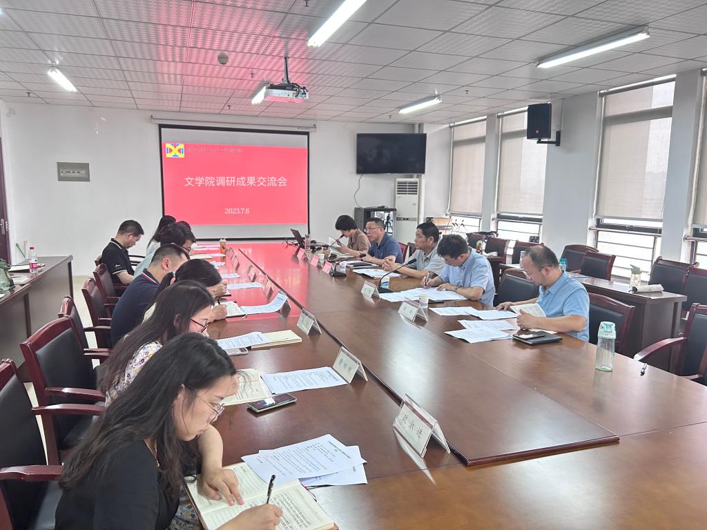 本网讯 为推动主题教育走深走实,扎实做好调查研究成果转化,7月7日下午,文学院召开主题教育调研成果交流会,校主题教育第二指导组组长沈辉到会指导,学院党政班子成员、支部书记、系主任参加交流会。