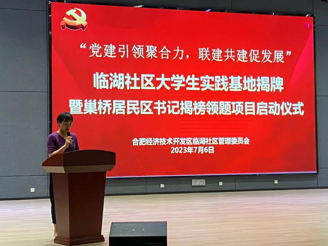 周燕为仪式致辞,强调此次大学生社会实践基地揭牌是学校和社区基层合作共建,助力基层治理的重要载体,有利于发挥各自优势,推进双向互动良好格局。