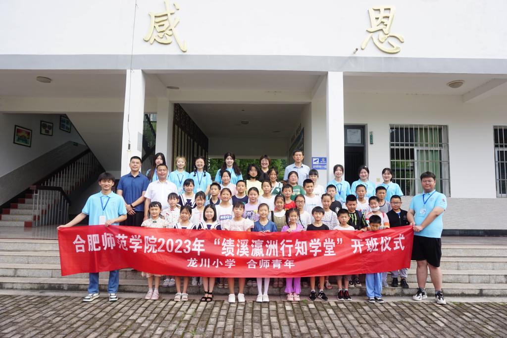 本网讯 7月4日上午,院团委绩溪瀛洲行知学堂于宣城市绩溪县瀛州中心小学(龙川小学)顺利开班。瀛洲中心小学校长吴晓秋、副校长张继全、党委副书记汪慧铭,我院团委教师、学堂指导教师王露,11名“小先生”及40余名小学员参加开班仪式。
