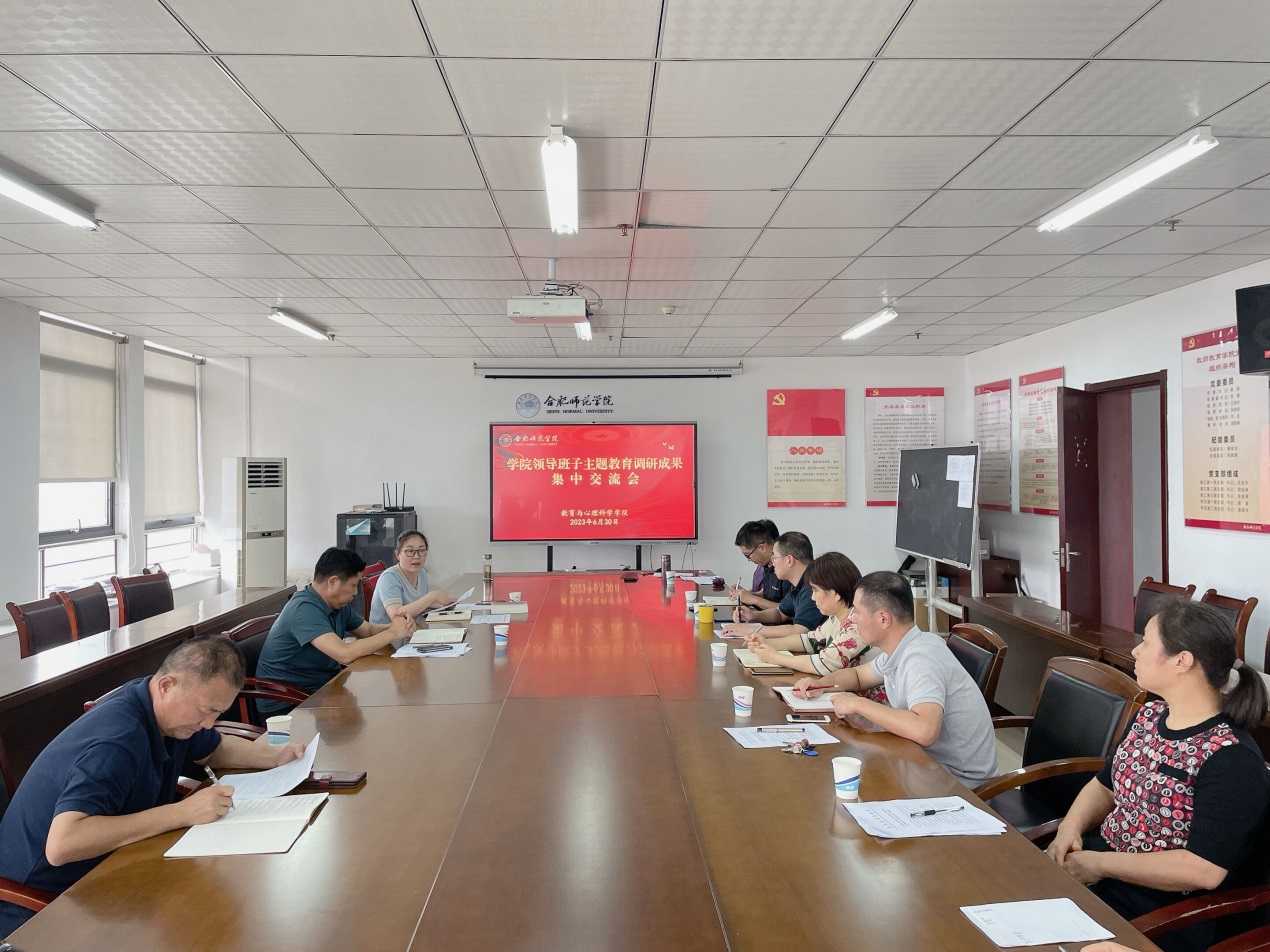 本网讯 6月30日,教育与心理科学学院召开学习贯彻习近平新时代中国特色社会主义思想主题教育调研成果集中交流会,校党委主题教育第二督导组组长沈辉、指导组成员王银银到会指导。学院领导班子、党委委员、支部书记参加会议。会议由院党委书记董萍主持。