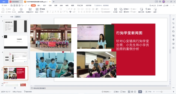 会上,2022年示范行知学堂负责人2021级英语(示范)专业江婉婷同学以《如何办好“五星级”行知学堂》为题,介绍了行知学堂项目的开办历史及其受到的广泛社会关注,讲解开办一个优秀的行知学堂的具体条件,展示往届优秀行知学堂的课程安排及特色创意活动。