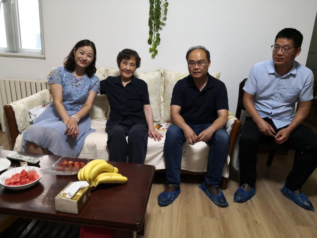 在滕德贵家中,几位领导亲切关心滕老师的身体状况,并介绍了学院目前的发展状况,叮嘱滕老师要多注意身体。聊天中,滕老师回忆了他工作之初的教学场景,以及同事们之间的往事,虽然时隔久远,滕老师却如数家珍,历历在目,充分体现了老一辈教师对教育事业的热爱与奉献。