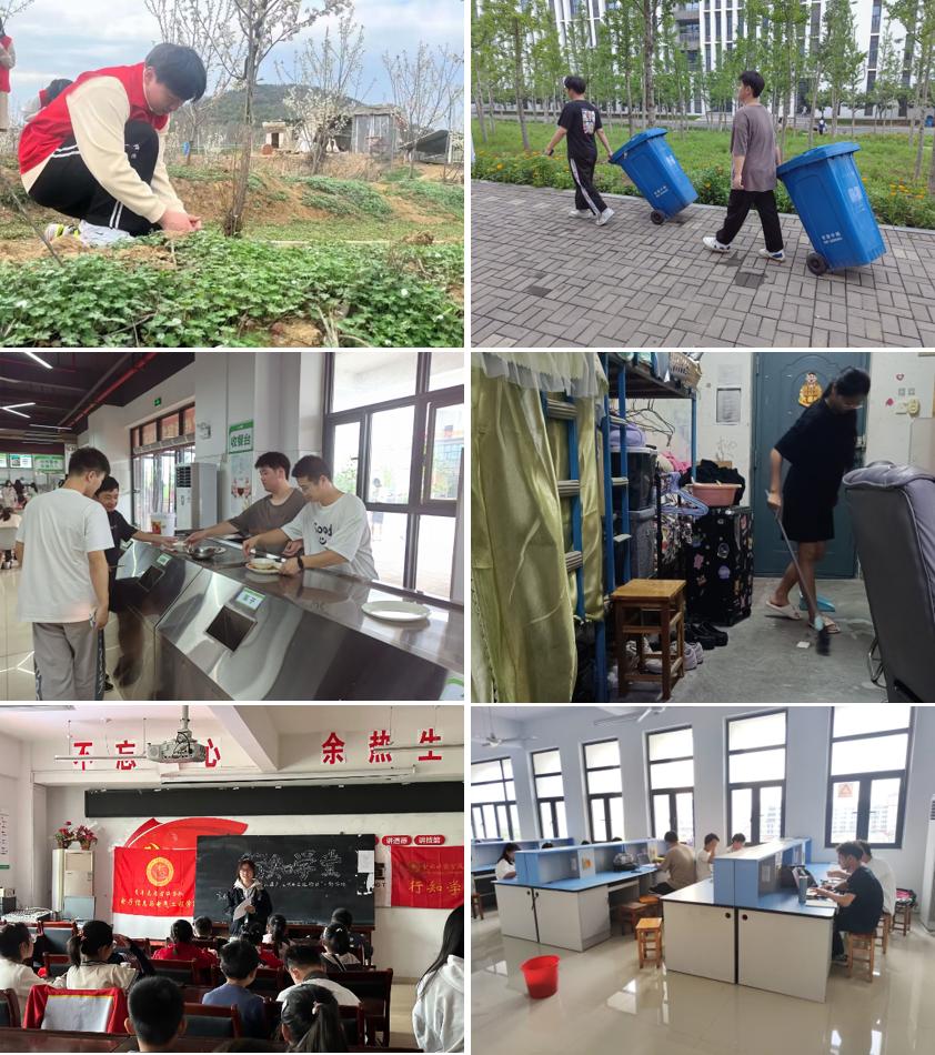 突出实践,知行合一。创新方式方法,组织学生积极参加校园卫生保洁、食堂劳动、教学辅助等劳动实践活动,使学生切身体会到劳动成果来之不易。融合校园管理,组织学生分批参与校园绿化养护,耕种校园劳动责任田,使学生在动手实践、出力流汗中接受锻炼、磨练意志。加强劳动教育阵地建设和平台搭建,将劳动教育与生活技能、志愿公益、社会实践、科技创新等有机结合。引导学生参加校外各类公益劳动,以黄麓镇行知学堂为平台,在志愿服务的过程中落实“劳动育人”的理念。依托学院“双创”育人资源,以学科竞赛、科创社团、开放式实验室等为抓手,积极组织学生参加“互联网+”大学生创新创业大赛、挑战杯、其他类专业比赛等,着力构建创造性劳动育人体系,打造校外劳动大课堂。