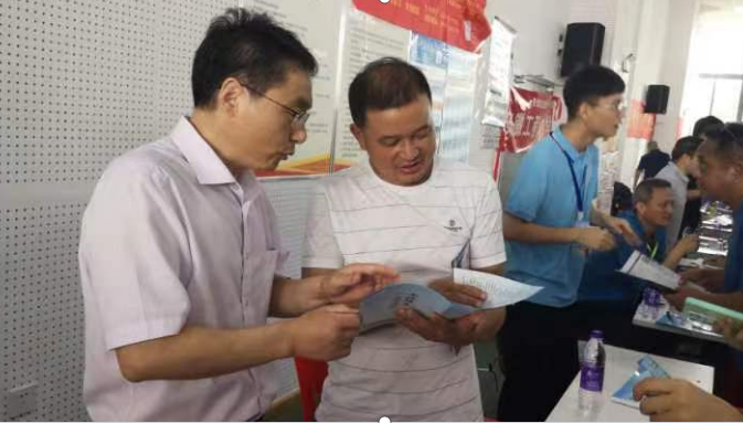 25日上午,宣讲团来到定远中学,该校今年高分段考生数量多,其中被屏蔽的高分段学生有三名,生源质量较高。在省考试院负责人对安徽省招生政策进行解读后,考生及其家长纷纷来到咨询台进行现场咨询,考生重点关注我院专业设置、录取分数和名次、学习环境、考研升学录取情况等,沈辉和王传兵给予了认真细致的解答。