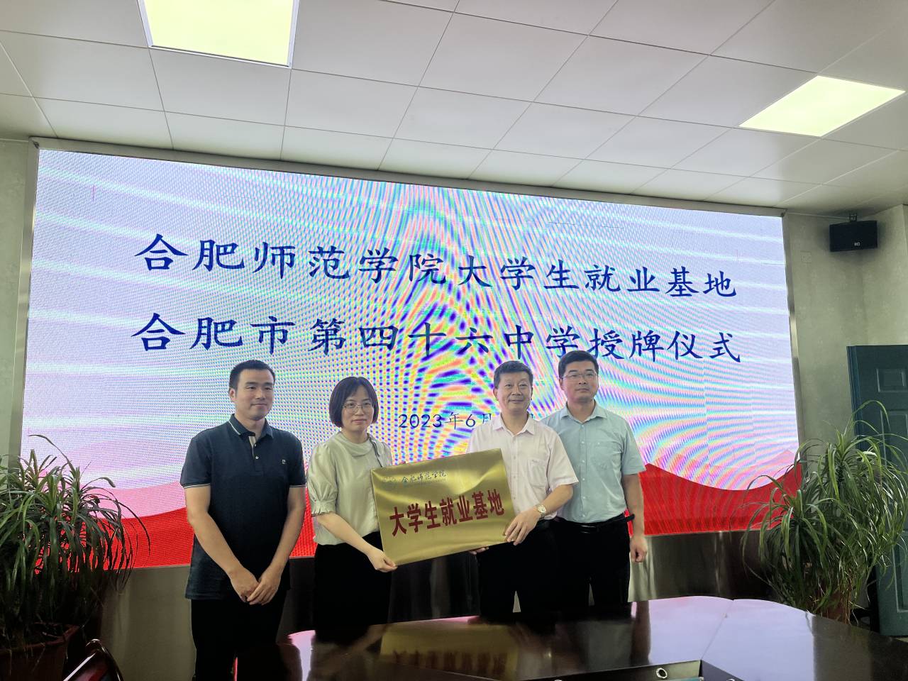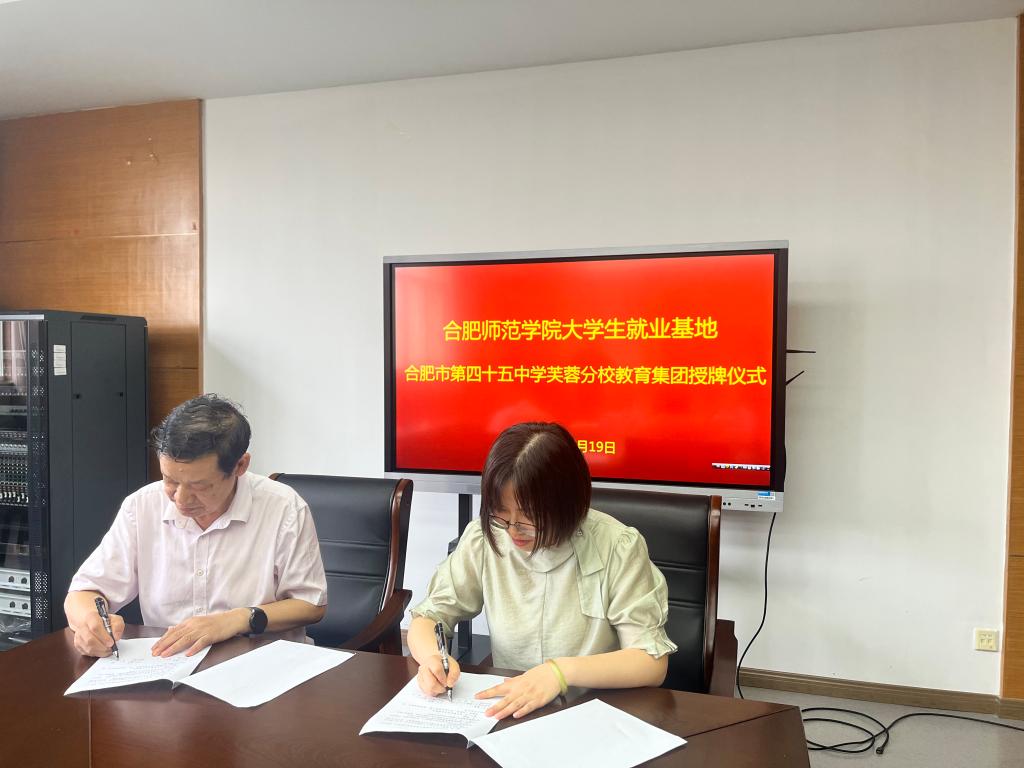 会后,学院与合肥四十六中、合肥四十五中芙蓉分校南校区举行共建就业基地签约和授牌仪式,刘艳代表学院与合肥四十六中、合肥四十五中芙蓉分校南校区签订了就业基地协议。