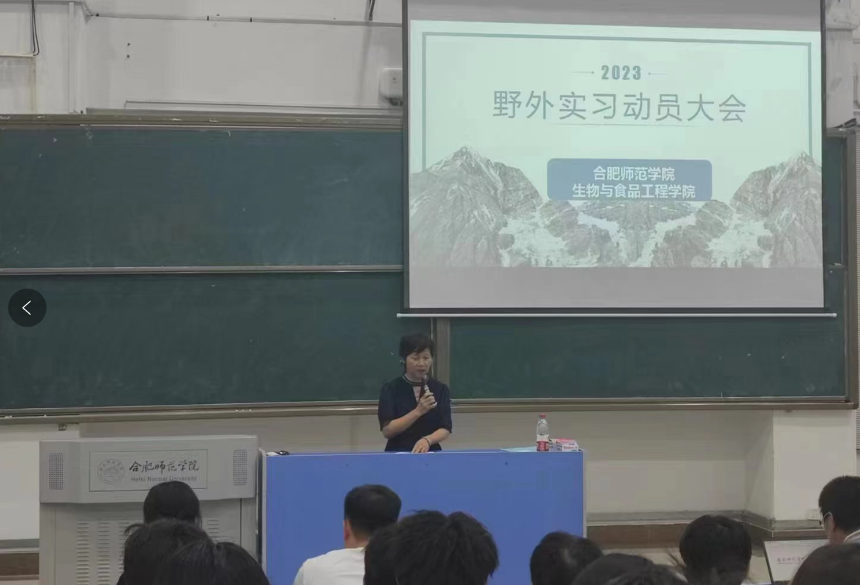本网讯 6月14日中午,生物与食品工程学院在逸夫楼西阶一梯教室召开2023年动植物学野外实习动员大会,学院党委书记郭桃芬、副院长朱桂兰及实习相关指导教师、辅导员出席了会议,全体2021级和2022级生物科学专业学生参加了动员会,动员会由实践教学部主任张雁主持。