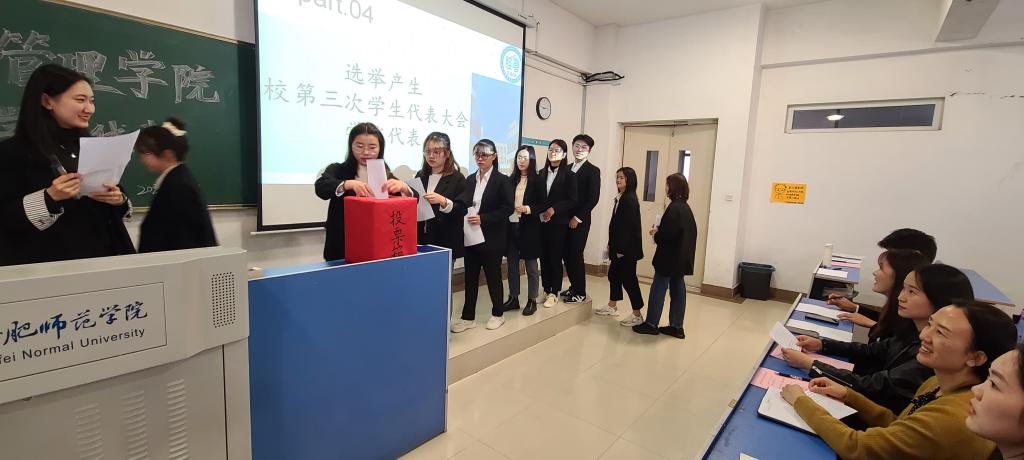 会上,与会代表以无记名投票的方式,选举产生beat365唯一官方网站第三次学生代表大会代表和新一届经济与管理学院学生会主席团成员。伴着庄严的《beat365唯一官方网站校歌》,我院第一次学生代表大会胜利闭幕。(经济与管理学院:张璐)