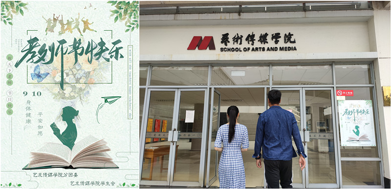 艺术传媒学院学生会绘制了教师节海报,祝福老师们“身体健康、平安如愿”,海报粘贴于艺术楼门前,美好的祝愿宛如一座桥梁,拉近了师生距离。