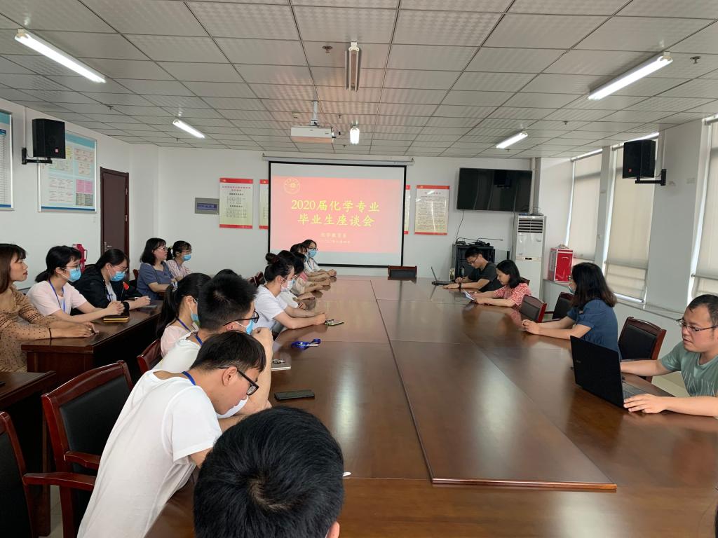本网讯 6月4日上午,化学与化学工程学院在行知楼1402会议室(锦绣校区)举行了2020届化学专业毕业生座谈会,化学与化学工程学院党委副书记徐祝青及部分化学专业专任教师出席了本次座谈会,会议由化学教育系主任凌波主持。学院2020届化学专业毕业生代表参加了座谈。