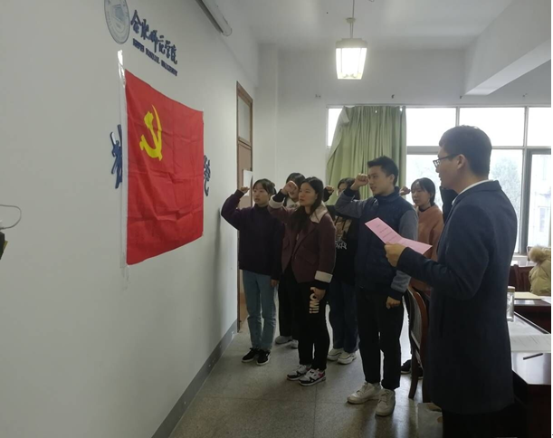 本网讯 12月16日,教师教育学院学生第二党支部预备党员入党宣誓大会在三孝口校区图书馆二楼会议室举行。党支部书记、正式党员、新接收的学生预备党员和入党积极分子代表参加了会议。会后学生党员们通过清捡垃圾、擦净黑板等活动美化校园,为群众做好事做实事。