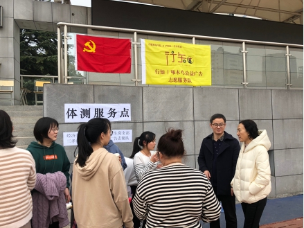 本网讯 12月15日,我院在三孝口校区进行了体质健康测试。经济与管理学院三孝口学生党支部联合三孝口街道啄木鸟公益广告志愿队、16级酒店管理班和18级人力资源管理班组成党员志愿者体测服务点,在体测的整个过程中为参加体测的同学们提供后勤服务,准备了热水、矿泉水、纸巾、糖果等物品在同学们需要之时予以提供,也时刻准备着为身体不适的同学及时提供送医服务,为同学们在进行体质测试时提供良好的安全保障。