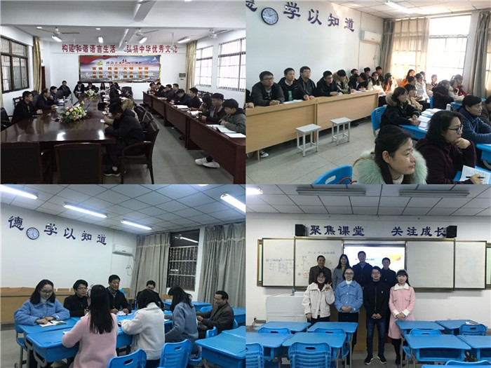 郑支农一行深入学院2018级教育硕士研究生实习汇报课课堂。在上派初级中学朗心楼公开课教室,庞飒、田卉、盛家喜、王燕等四位研究生向各位老师展示一节精心准备的教学课,庞飒的《轴对称图形》、田卉的《二元一次方程组的解法》、盛家喜的《线段的垂直平分线》和王燕的《特殊角的三角函数值》等风采各异的汇报课令得到评课老师们肯定和称赞。卫德彬初中数学名师工作室承担本批研究生教育实习的指导教师解正兵、刘清清、丁增宝、卫德彬及部分数学教师和30名2017级普通本科实习生全程参加观摩学习。汇报课活动由工作室领衔名师卫德彬主持。