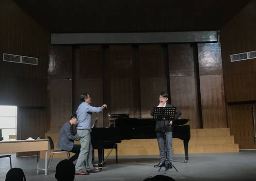 本网讯 10月31日上午,由浙江音乐学院声歌系陶维龙教授对我院青年声乐教师演唱指导的声乐大师课在锦绣校区音乐厅圆满结束。现场吸引了大量声乐爱好者和师生前来观看学习。