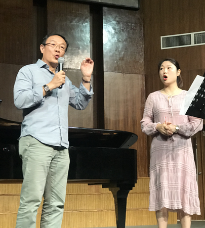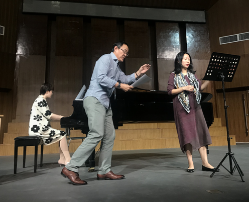 声乐大师课开始,罗可曼院长对陶维龙教授昨晚的音乐会给予高度赞赏,并欢迎陶维龙教授的到来。整个声乐指导过程中,我院声乐教师分别演唱了《致音乐》、《两个警卫兵》、《纺车旁的玛格丽特》、《小夜曲》、《鳟鱼》5首德奥艺术歌曲,陶伟龙教授首先指出作为歌唱演员从上台到演唱的过程都要立刻进入角色,在演唱肢体动作方面要恰到好处,并强调唱好德奥艺术歌曲最重要的是语言的准确性和歌曲情绪的连贯性,指导我院教师在德语演唱过程中的发音吐字问题。陶维龙教授充分肯定我院声乐教师的专业技能水平。