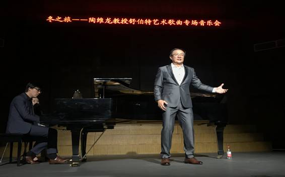 本网讯 由浙江音乐学院声乐歌剧系和音乐学院主办的陶维龙教授舒伯特《冬之旅》艺术歌曲专场音乐会,10月30日晚在音乐厅成功举办,浙江音乐学院青年教师金麦克担任伴奏。