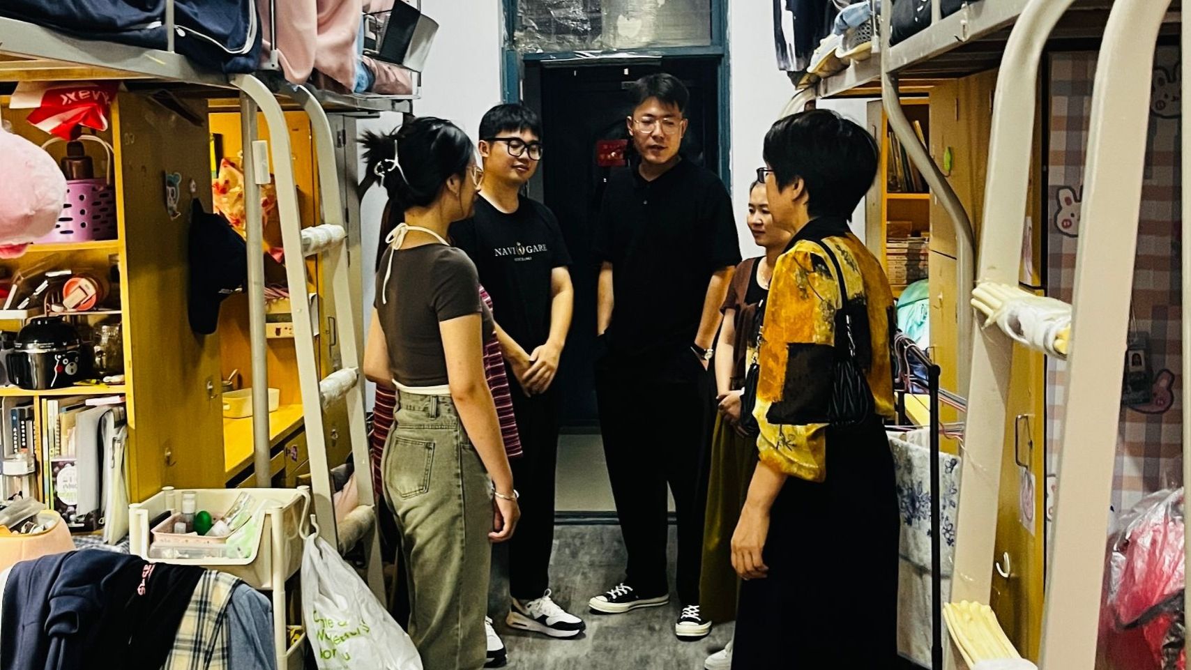 访学生宿舍,关怀暖心间。金色九月,阳光明媚,为进一步了解音乐学院学生的日常生活情况,帮助学生尽快从假期模式调整到大学生活,9月3日下午,音乐学院党委书记蔡成梅以及辅导员实地走访了音乐学院学生宿舍,与学生进行亲切交谈。走访过程中,蔡成梅了解了同学们返校后的适应情况,并提醒学生要保持寝室整洁、保管好自己的个人物品以及要注意用水用电安全,同时要尽快调整心态,回归到正常的学期生活和学习中来。