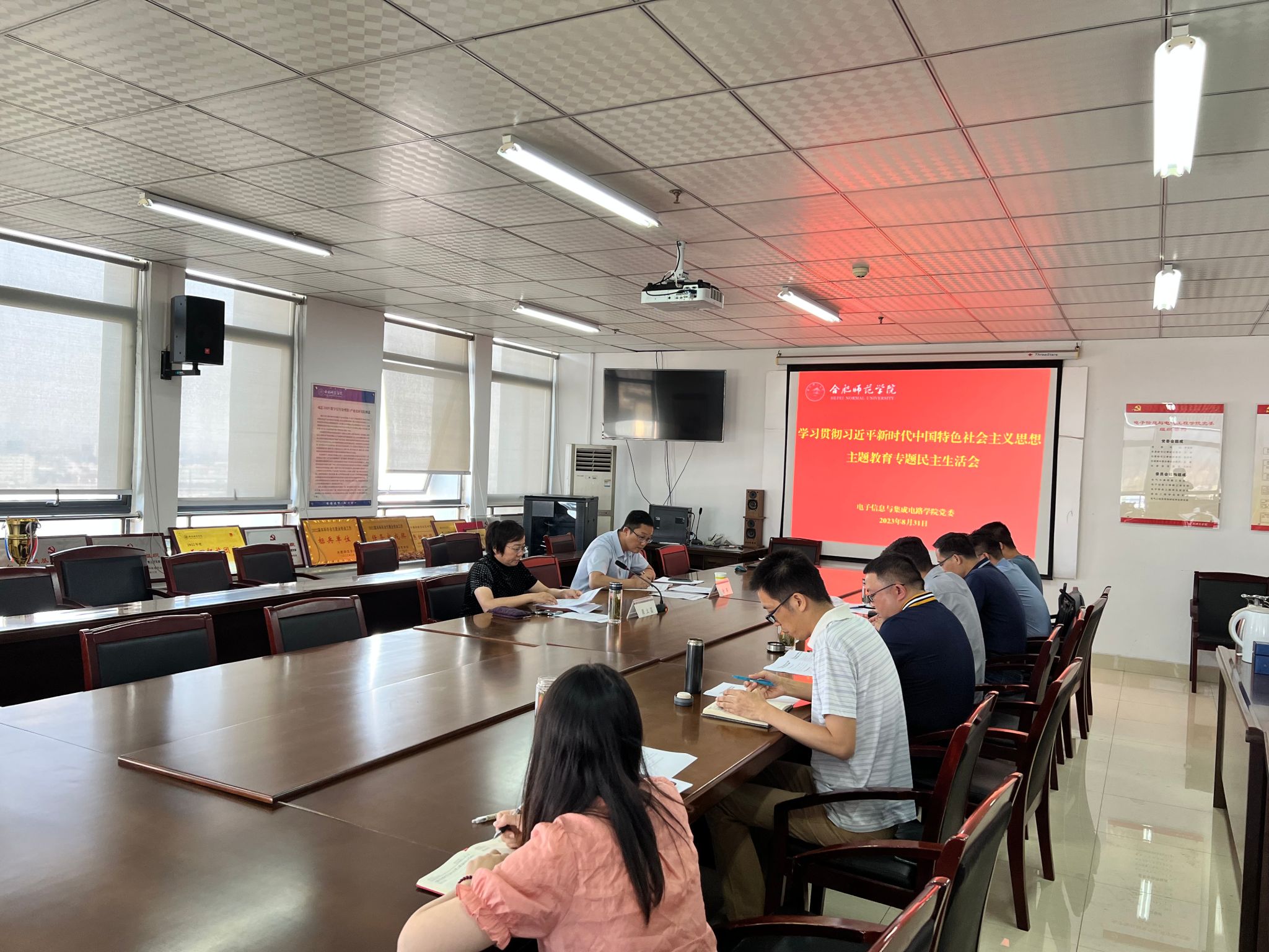 本网讯 根据主题教育工作安排,8月31日上午,电子信息与集成电路学院党委召开学习贯彻习近平新时代中国特色社会主义思想主题教育专题民主生活会,院党委副书记梁立昌、组织部副部长余军到会指导。会议由电子信息与集成电路学院党委副书记、院长张忠祥主持。