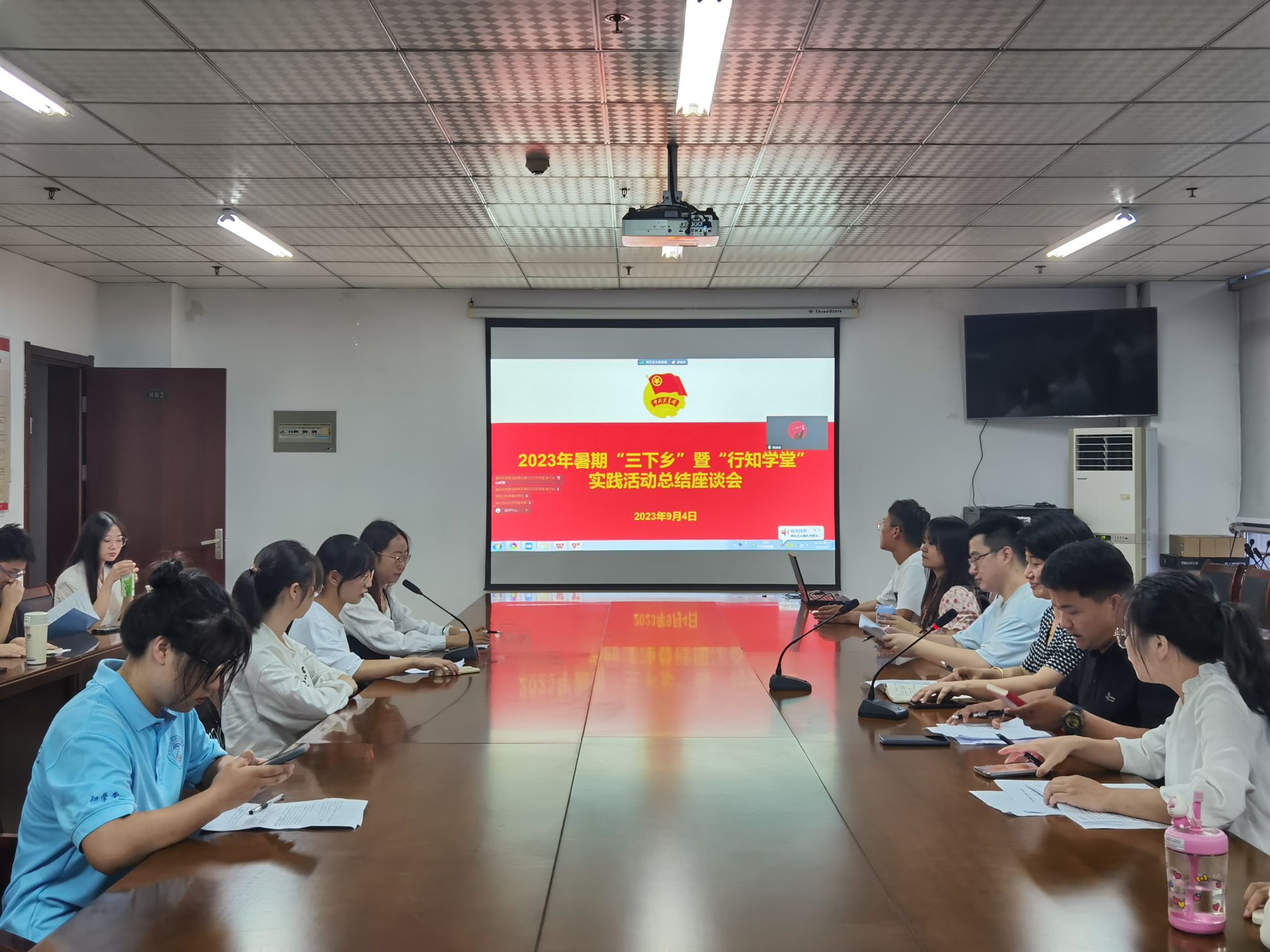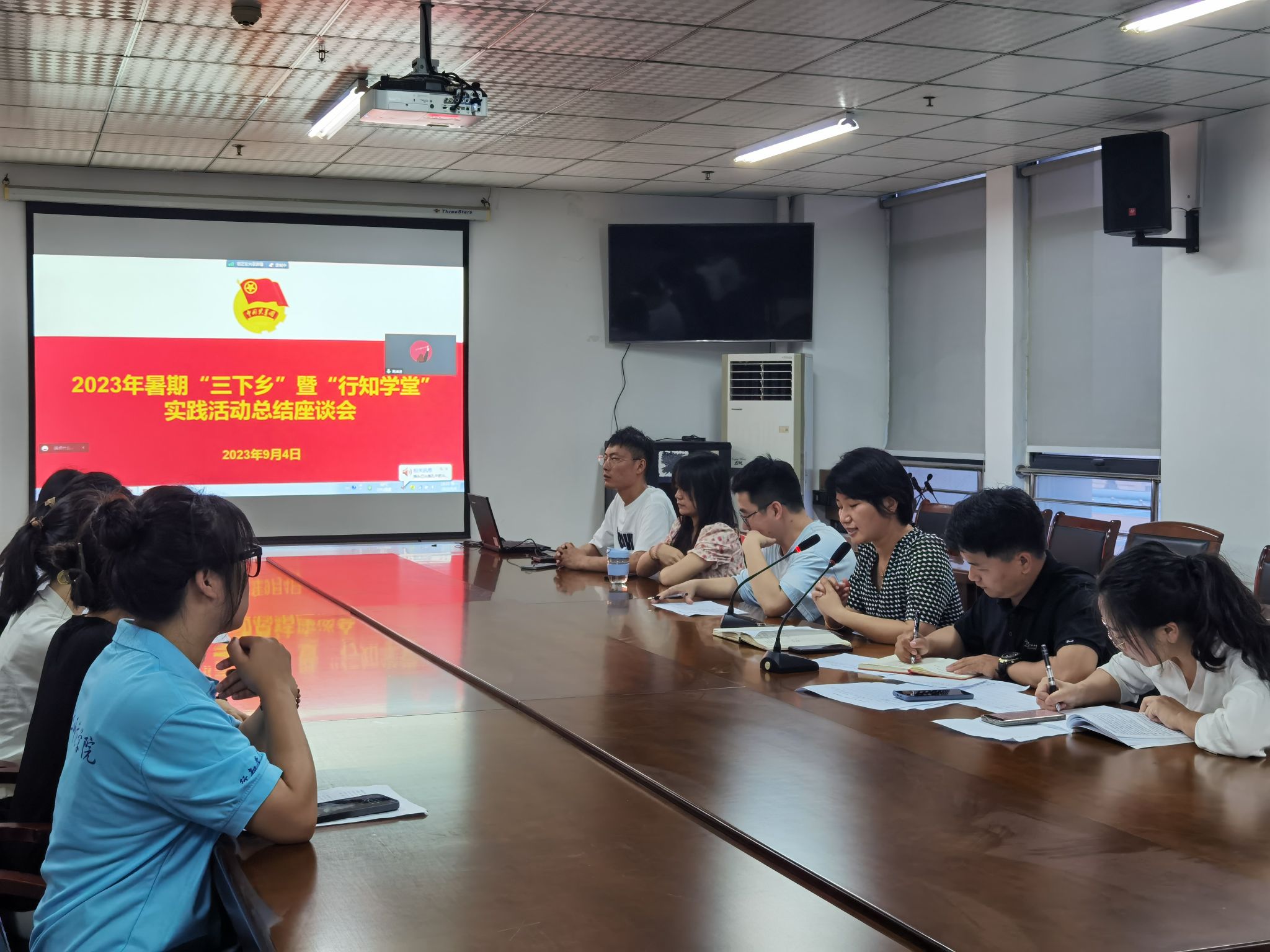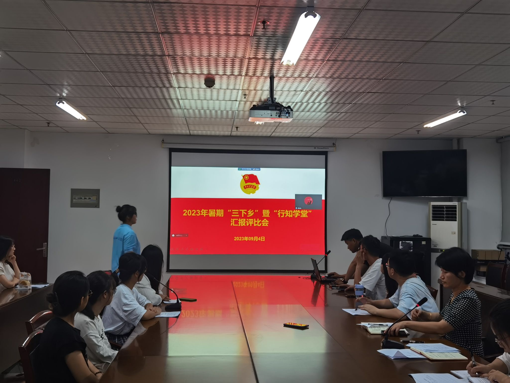 本网讯 为全面落实学校关于2023年大学生暑期“三下乡”暨“行知学堂”社会实践活动部署要求,总结文学院大学生社会实践好经验和典型做法,展现社会实践好活动和示范品牌,9月4日晚,文学院在锦绣校区行知楼802会议室,采取线上线下相结合的方式举行2023年暑期“三下乡”暨“行知学堂”社会实践活动汇报评比会。学院党委副书记夏娟、团委书记李惠恩、副书记疏淑进、辅导员程正、各班级团支部书记及行知学堂负责人代表参加了评比会。