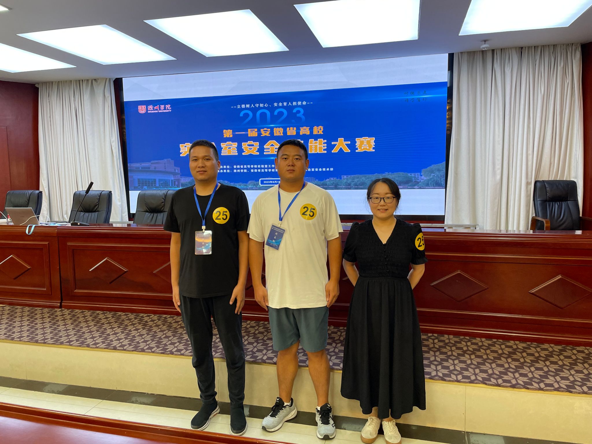 本次活动由安徽省高校实验室研究会主办,以“立德树人守初心 安全育人担使命”为主题,培养实验室安全管理队伍业务能力、提升实验室安全管理水平。我院实验室建设与管理中心副主任魏征担任领队,实验室建设与管理中心刘湘湘、化学与制药工程学院陈蕾、生物与食品工程学院陈亚军三位老师代表学校参赛并参加研讨会。本次大赛通过理论知识考试和现场查找安全隐患并提出整改方案和措施的比赛模式进行两场角逐。