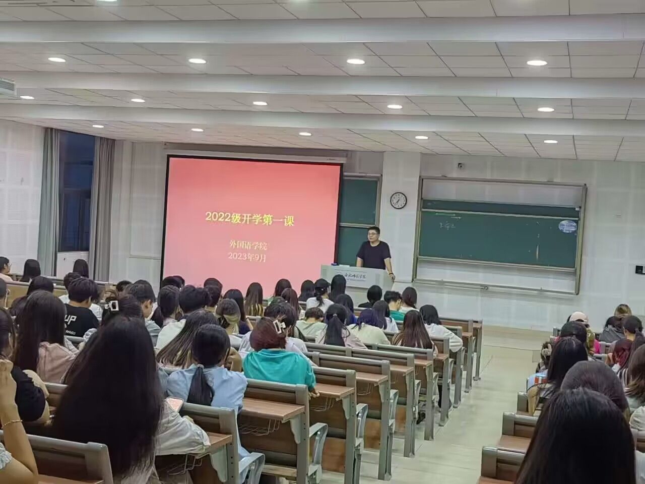 新征程带来新希望,“开学第一课”主题班会是学院开展思想政治教育的重要环节,也为新学期开好头、起好步奠定坚实基础。外国语学院将持续通过深入课堂、走访宿舍、谈心谈话等方式深入学生中间,倾听学生心声,解决实际问题,引导学生成长成才。(外国语学院:冯晓敏)