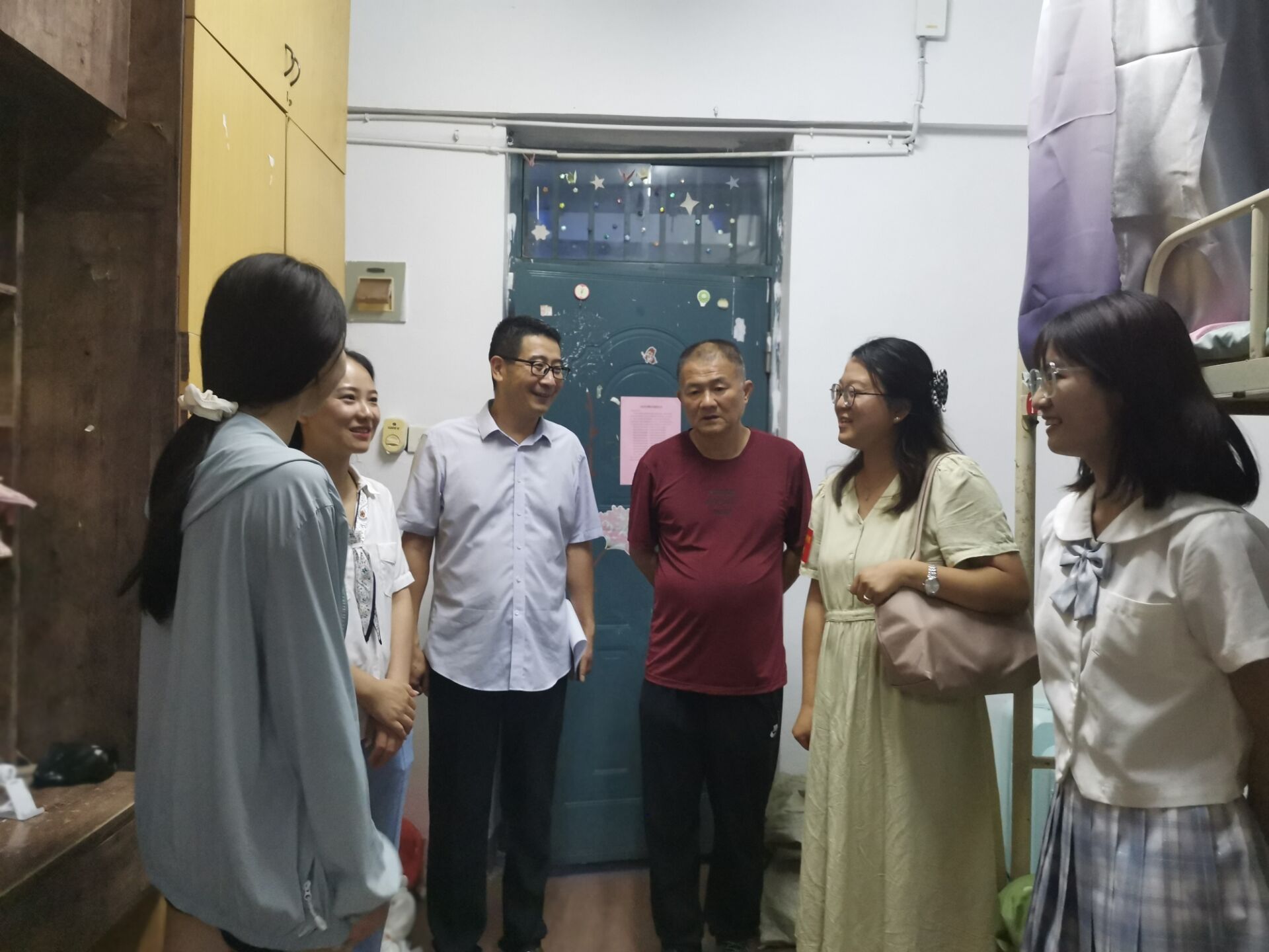 下午,学院领导班子和辅导员们分别深入两个校区宿舍,走访慰问新生,与同学们亲切交流,了解大家的报到情况、入学感受和问题困难,提醒学生防盗防骗,教育引导广大新生树立学习目标,积极奋发向上,开启自己的青春乐章。(教育与心理科学学院:王磊 闫可璇 王欣)
